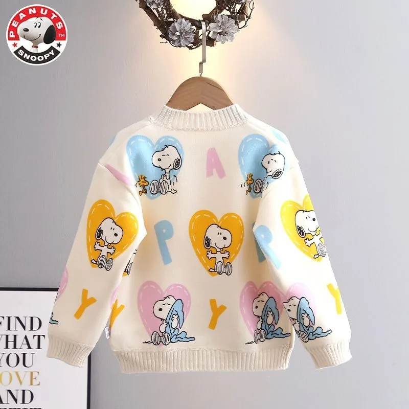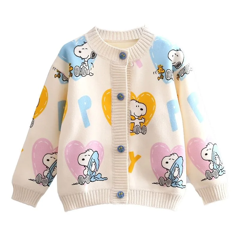 Cozy Snoopy Children’s Cardigan – Cute Love Print Knitted Sweater for Spring & Autumn