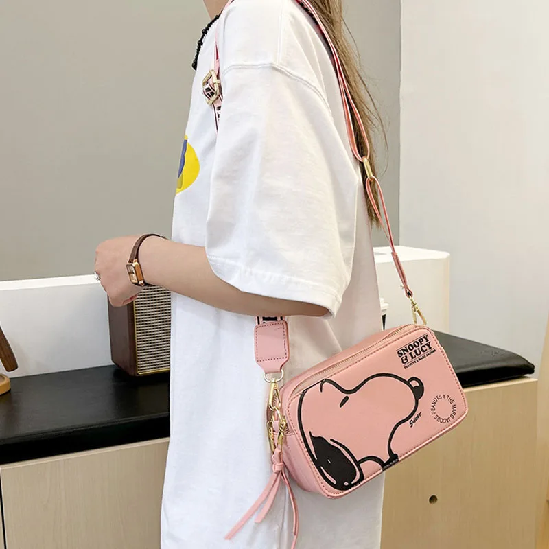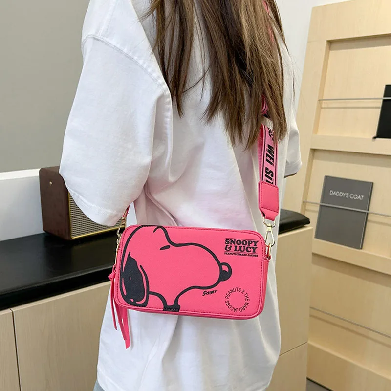 Show off your playful side while staying practical with this Snoopy crossbody bag. Featuring charming cartoon prints and a compact camera bag silhouette, this shoulder bag is perfect for fashion-forward women and Snoopy fans alike.