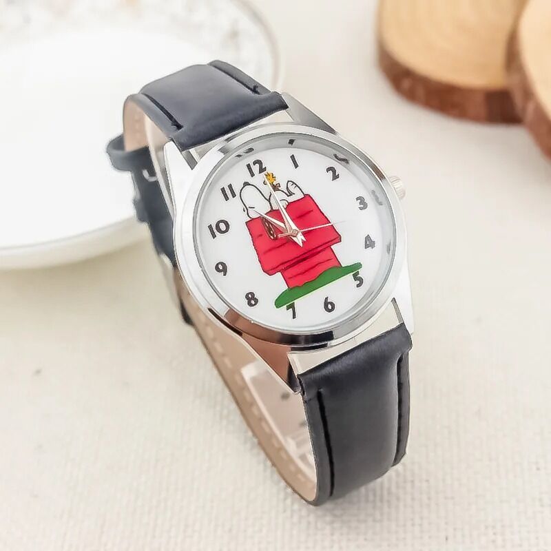 Snoopy Kids Quartz Wristwatch – Cartoon Leather Strap Watch for Boys & Girls | Student Learning Clock